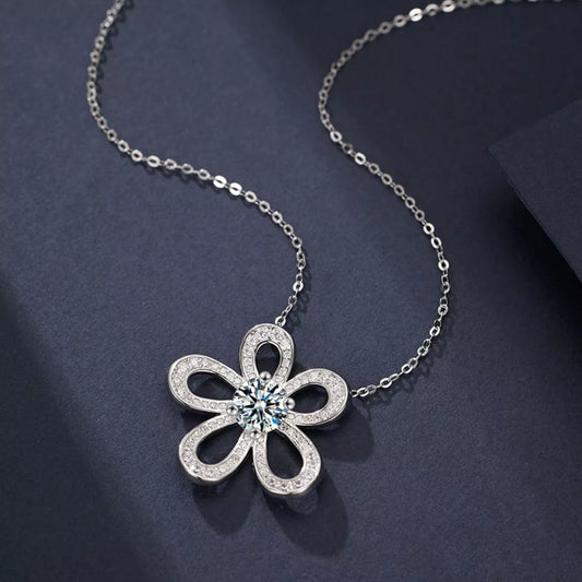 1 Carat Moissanite 925 Sterling Silver Flower Pendant Necklace