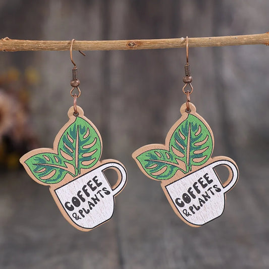 Wooden Alloy Dangle Earrings