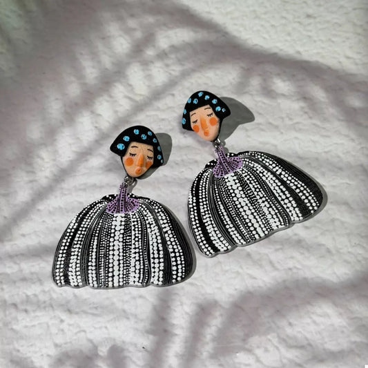 Whimsical Pumpkin Girl Dangle Earrings