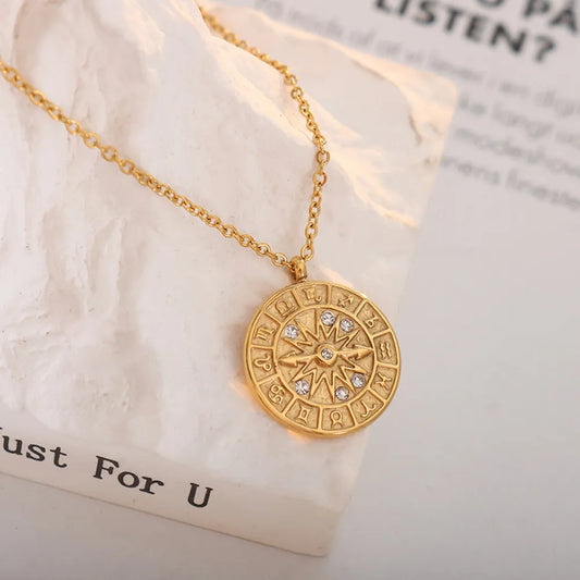 Regular price $37.00 USDRegular priceUnit price / per$63.00 USDSale price $37.00 USDZircon Titanium Steel Coin Shape Necklace