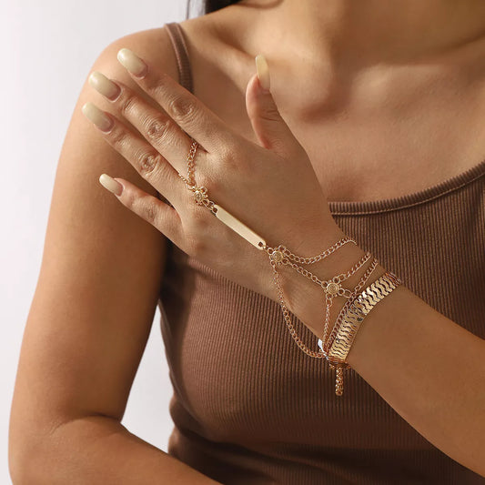 Multi Layered Chain Bracelet with Finger Ring