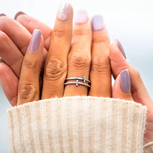 Regular price $73.00 USDRegular priceUnit price / per$122.00 USDSale price $73.00 USDDouble Band Cross Ring